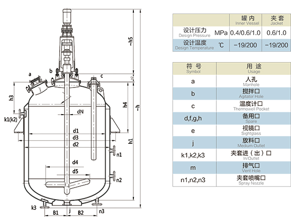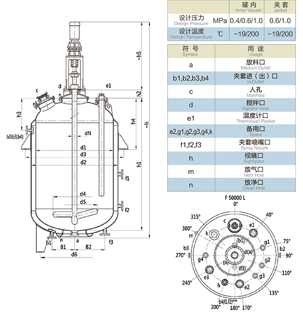 F8000L-F50000L閉式搪玻璃反應(yīng)釜(閉式搪瓷反應(yīng)釜)設(shè)計(jì)圖紙及參數(shù)如下所示: