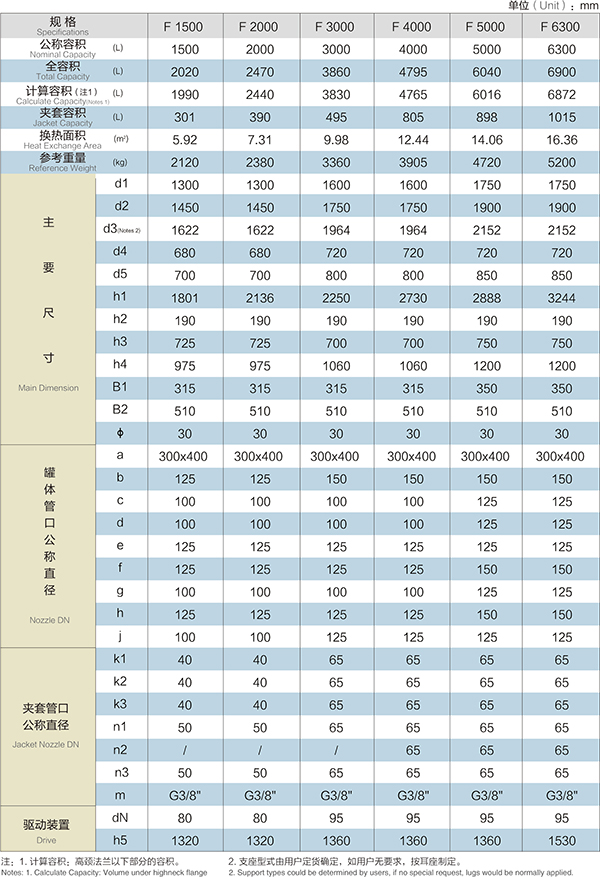 F1500L-F6300L閉式搪玻璃反應(yīng)釜(閉式搪瓷反應(yīng)釜)設(shè)計(jì)圖紙及參數(shù)如下所示: