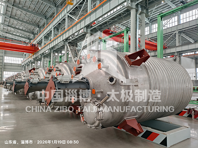 近日,淄博太極特材裝備車間迎來批量發(fā)貨節(jié)點,10臺定制非標不銹鋼反應釜分3車有序發(fā)運,如期交付客戶,用實力兌現合作承諾,彰顯公司在特材裝備制造領域的過硬實力。